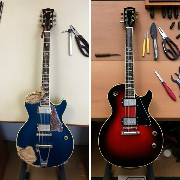 Devolvemos la vida a instrumentos vintage o dañados. Reparación de grietas, reemplazo de trastes, refinishing y trabajos especializados de recuperación.